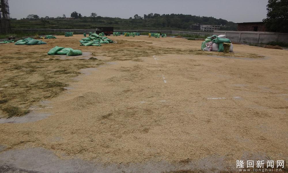 隆回新闻网讯(通讯员 张礼林 王双进)7月22日上午,隆回县雨山铺镇中心小学的大操场上像铺了一地金子,几名工作人员正在忙着翻晒稻谷。