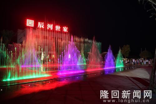 隆回新闻网讯 (记者 戴琛)【欢迎关注隆回新闻网微信公众号——天下隆回】7月22日晚上8点,辰河世家售楼中心前的音乐喷泉如期开放,为广大市民奉献了一场视觉盛宴。据了解,辰河世家售楼中心位于紫霞园社区,音乐喷泉从7月16日起正式投入使用,每晚8点至9点开放。
