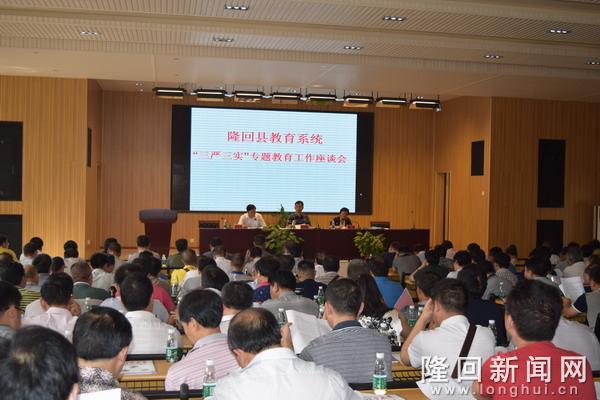 隆回新闻网讯(通讯员 周国华 马珏)7月26日上午,隆回教育系统在九龙学校召开“三严三实”专题教育工作座谈会,县委副书记陈历贤作专题党课报告,副县长刘芬主持会议并讲话,教育局党委书记、局长彭和生对当前工作进行部署安排。各乡镇中心学校校长、书记、政工副校长、教学副校长,乡镇初中学校校长、中心小学校长,桃洪镇中心学校下辖法人代表校长,县直学校(含民办学校)校长、书记,教育局局务会成员参加会议。
