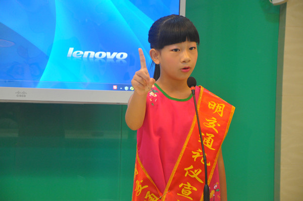 “大家好,我是宣传团的小格格,我的名字叫魏楚妍,今天我要给大家播诵一篇‘开心上学、安全回家、文明交通’的校园广播稿”。宣教活动在宣传员魏楚妍演讲中正式开始,她用一个个鲜活的案列以及孩子的心声向在座的叔叔阿姨们讲解了小朋友在上下学中应该注意哪些危险行为。
