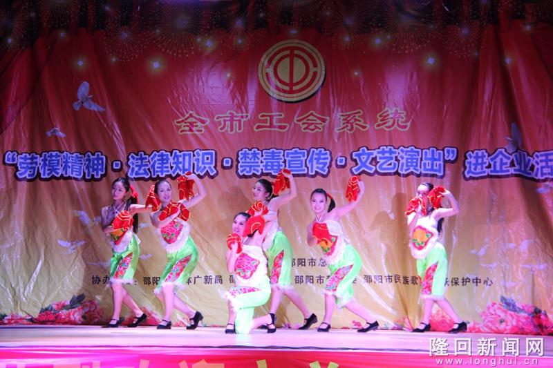隆回新闻网讯 (通讯员 罗理力)【欢迎关注隆回新闻网微信公众号——天下隆回】8月7日晚,湖南省隆回县工业园兴昂鞋业厂坪内不时传来一阵阵热烈的掌声,邵阳市总工会“劳模精神、法律知识、禁毒宣传、文艺演出”进企业活动正在这里举行。活动形式多样,寓教于乐,让园区2000余名民工在快乐中接受法制、励志教育。