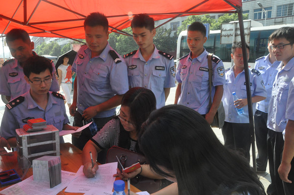 图为交警排队登记信息