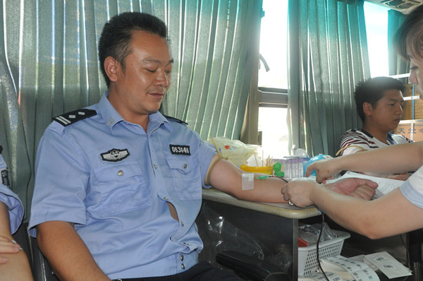 图为民警献血