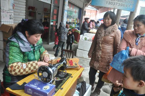 隆回新闻网讯(通讯员 陈远志)1月12日,隆回县金石桥镇白马庙村留守妇女郑素桃正在该镇集市一角为顾客修补衣服。郑素桃兴奋地告诉笔者,春节临近,街头修补开始进入旺季。加之自己对缝补有技术,很在行,一天至少有上百元的纯收入。更重要的是,在家还可管理孩子,照看父母,可谓两全其美。据悉,该镇像郑素桃这样有技术在街头“挣收入”的留守妇女将近百人,她们每天晚出早归,已成为街头“打工族”里一道最亮丽的风景。