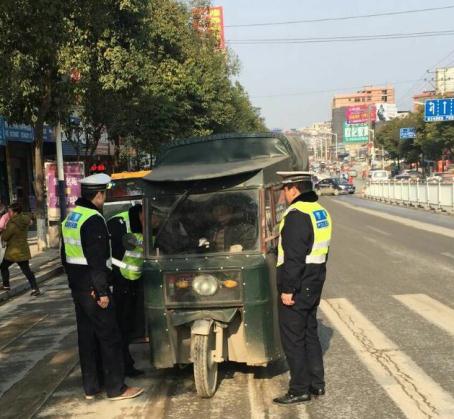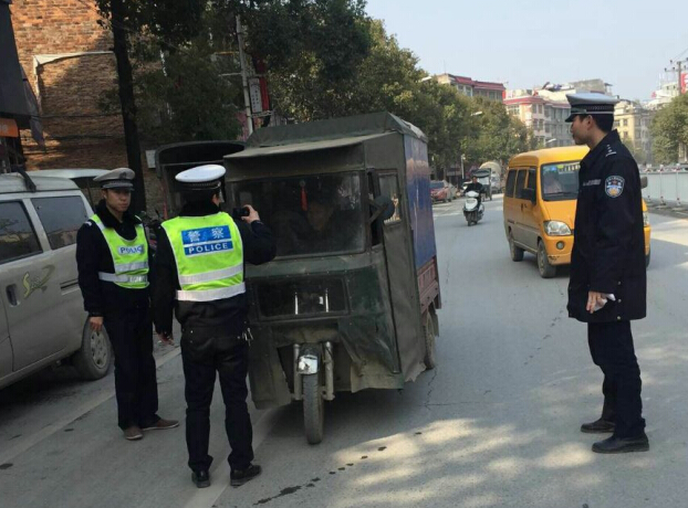 1月25日上午,该大队一中队中队长雷武展带领民警根据三轮车多在农贸市场、汽车总站行驶的特点和规律,突出三轮车违法时段,合理调配力量,运用固定执勤及巡逻布控结合的方式,加大对三轮车违规载客、无牌无证驾驶、酒后驾驶等的管理力度,扎实开展集中整治。对查获的违法三轮车一律暂扣,对查处的三轮车驾驶员按规定予以处理,绝不姑息。