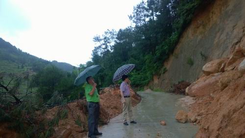 因暴雨未停,山体仍在崩塌。经察看现场后,李明海要求镇村安排专人进行24小时值守,在险情公路两端竖立安全警示牌,要时刻关注天气预报及灾害预警信息,及时注意险情灾情,迅速组织大型机械清除公路上的石块沙土。
