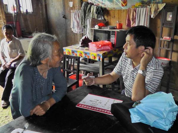 图为县民政局局长吴厚宾(右)在走访结对帮扶对象