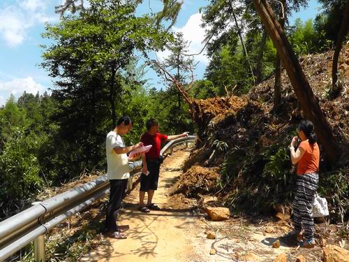 观音村是县民政局的驻村帮扶村。在此次强降雨过程中,该村农田受灾面积大,受灾群众多,村组交通干道塌方5处,最严重的塌方处,连摩托车都难以通过,严重影响了山区村民的生产生活和出行。