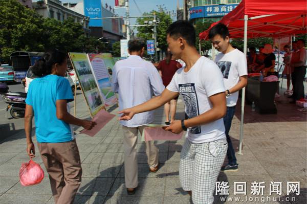 图为隆回县国土资源局工作人员在九龙广场发放宣传资料