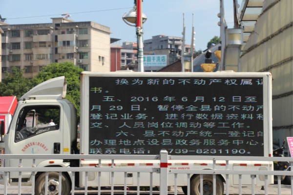 图为隆回县国土资源局安排的流转宣传车