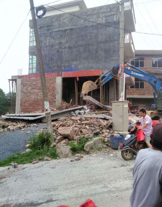 据悉,岩口镇李某和彭某未经许可私自建房,该镇干部多次上门做工作,劝导其停止违法建房行为,但方某和彭某并没有停止施工,镇党委政府经研究决定对其违法建筑进行强制拆除。
