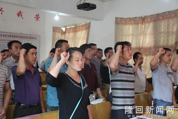 图为与会党员重温入党誓词