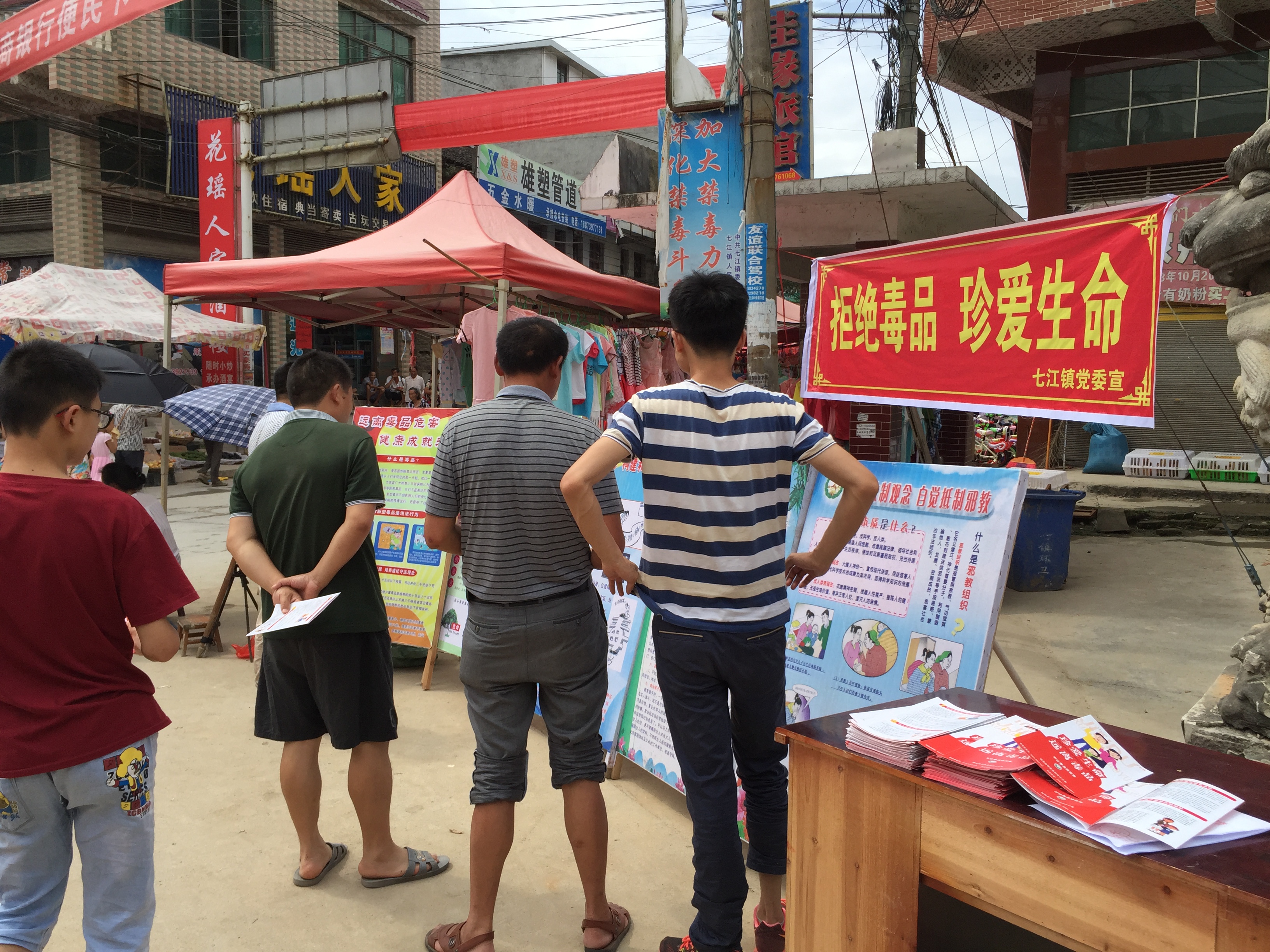 隆回新闻网(通讯员 胡波)6月30日,七江镇综治、司法等部门联合举办“拒绝毒品 珍爱生命”专项展览,并现场向群众发放“远离毒品”宣传册。