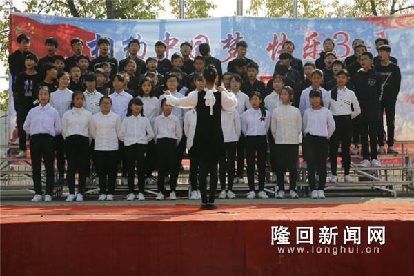 隆回新闻网讯(通讯员 钟家华 王双进)“隆回——美喽——九龙飞去又飞回,这里山川真秀美;白马山凌云,望云峰叠翠;魏源湖流波,东山迎朝晖……”11月10日,隆回县三阁司镇中学“快乐合唱3+1”班级合唱比赛,在校园大操场火热举行。全校二十多个班级的1700多名学生参加。