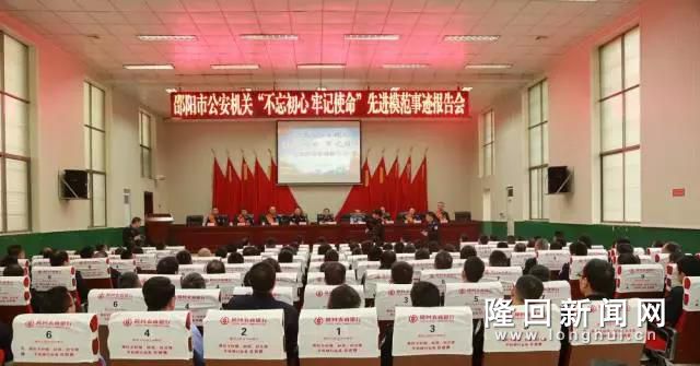 隆回新闻网讯(通讯员 曾凡庚 刘剑)为深入贯彻落实全省、全市公安机关政治建警工作大会精神,全面推进政治建警工作,4月20日,邵阳市公安局“不忘初心•牢记使命”先进模范巡回事迹首场县市区报告会在隆回举行。县局在家的局领导、中层骨干、民警、职工、辅警共180余人现场聆听报告会。市局党委委员、政治部主任朱建龙出席报告会并讲话,副县长、县公安局党委书记、局长申松能出席,报告会由政委黎军主持。