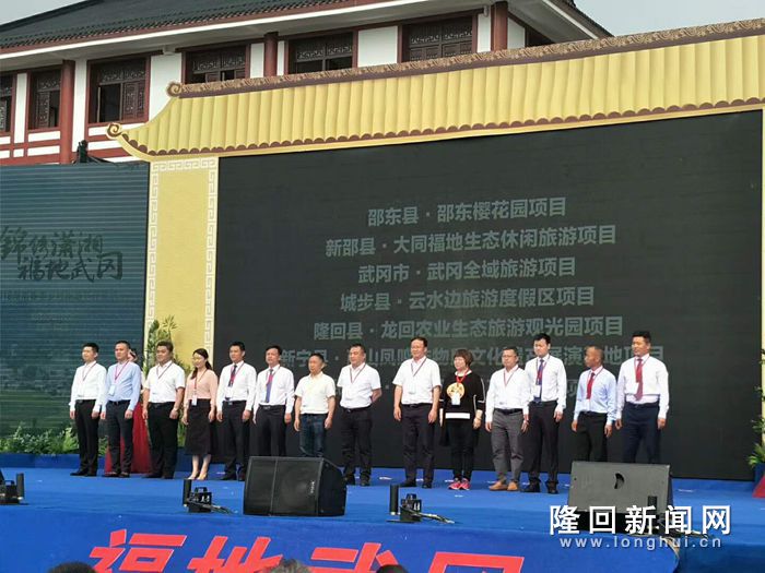 此次春季乡村旅游节,隆回县签约了“龙回农业生态旅游观光园”项目,六都寨镇人民政府镇长陈付华、湖南龙回生态旅游发展有限公司董事长刘光界分别代表甲乙双方上台签约。