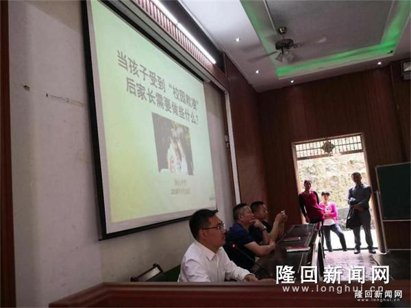隆回新闻网讯(通讯员 肖刚刚)5月13日上午,雨山中学利用召开家长会之际对全体家长和学生进行了防治校园欺凌事件的专题讲座,近千名学生和家长聆听了讲座。