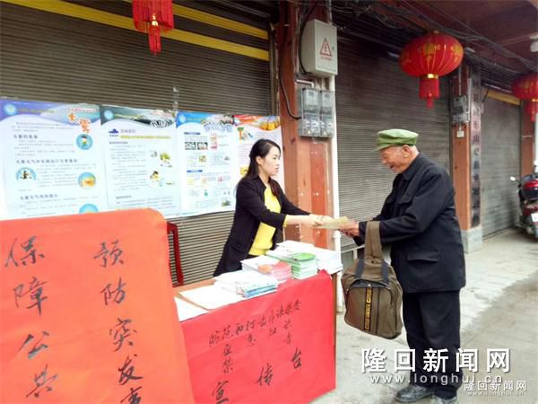 隆回新闻网讯(通讯员 姚明)5月12日上午,隆回县虎形山瑶族乡人民政府应急办、综治办和民政办干部利用赶集日人流集中的特点,通过在街道旁悬挂横幅、播放电子显示屏标语、摆放展板、发放资料、现场咨询等形式开展应急知识、禁毒、防范和打击非法集资、防灾减灾等集中宣传活动,提高群众应急防范意识。图为活动现场。