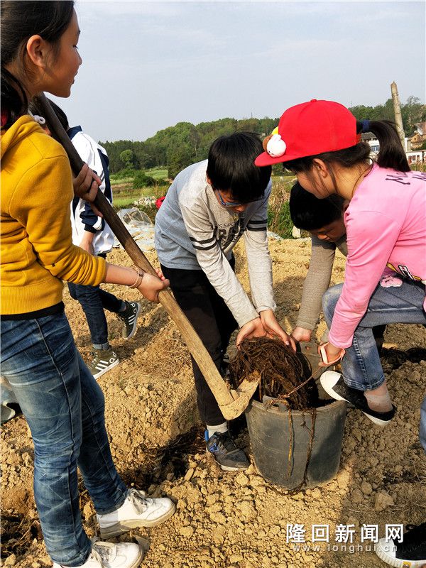 隆回新闻网讯(通讯员 王双进 李金枝) “哇!这块实验田里种植的农作物,品种好丰富啊——南瓜、白瓜、西瓜、黄瓜、丝瓜、辣椒、生姜、四季葱……真是应有尽有!”从立春到入夏的这段日子里,百花吐艳,蜂飞蝶舞。隆回县雨山中心学校科学种植兴趣小组的二十余名中、小学生,在老师的辅导下,马不停蹄地开展“同种一丘田”竞赛活动。师生们不怕苦不怕脏,亲自从养殖场掏来腐熟猪牛粪,从榨油坊买来菜枯粉等有机肥,创新栽培模式,实验种植瓜果蔬菜等农作物,忙得不亦乐乎。
