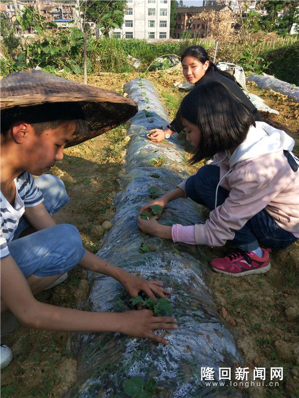 小学组这次重点栽培凉薯等作物,到秋末再对其进行某些科学实验探究,从而教育儿童树立正确的饮食安全观;中学组则重点栽培西瓜等作物,试图通过重施农家有机肥,旨在提高瓜果甜度、品质与收成。殊途同归,善良的孩子们,都是为了生产安全无公害瓜果蔬菜。