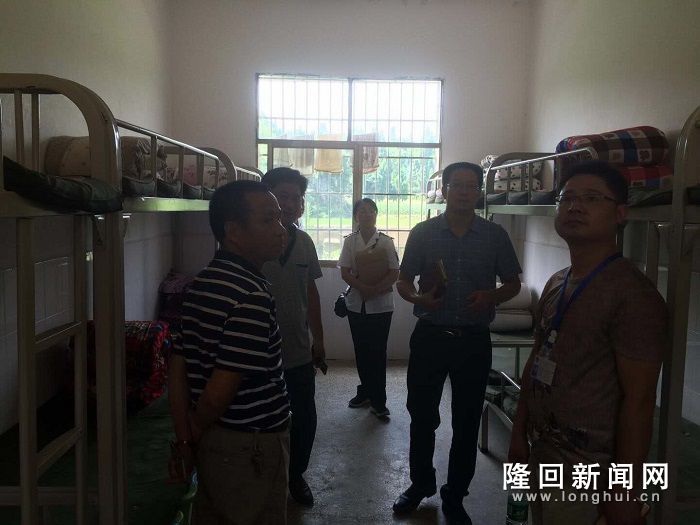 检查组在罗白九年制义务学校督查学生宿舍卫生安全