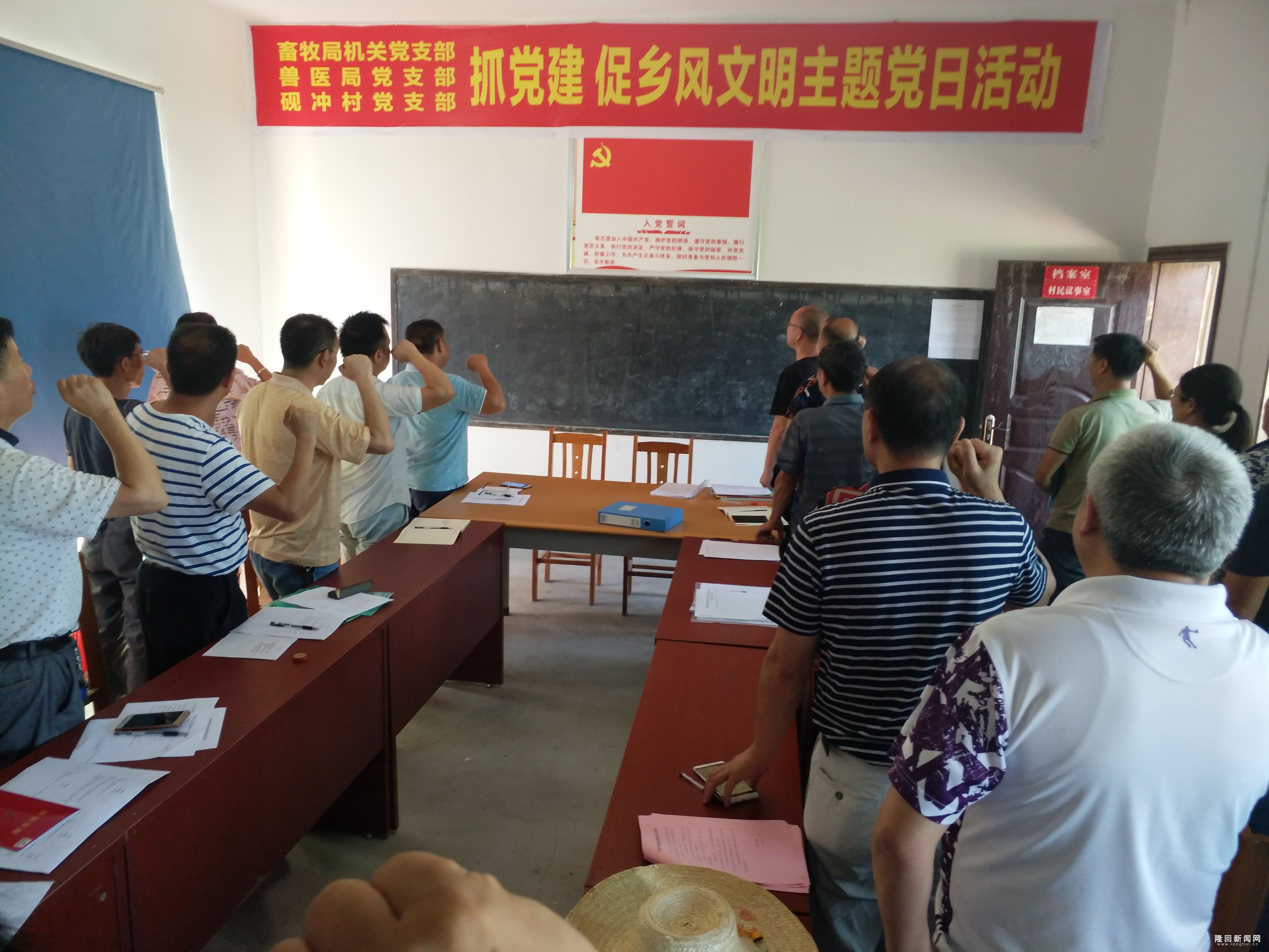 隆回新闻网讯(通讯员 宁志春)6月25日上午,隆回县畜牧水产局组织局机关党支部、兽医局党支部、砚冲村党支部所有党员及入党积极分子在桃洪镇砚冲村开展基层党组织“抓党建 促乡风文明”主题党日活动,进一步增强广大党员的组织观念和党性修养。