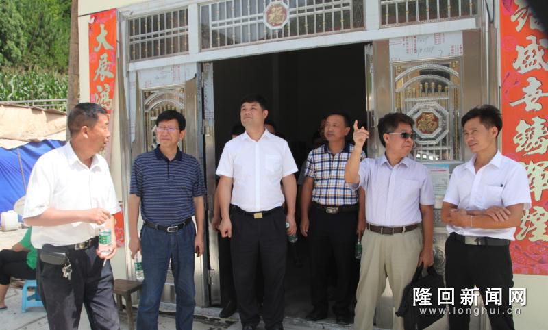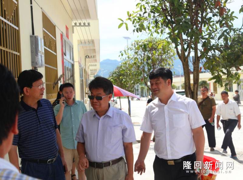 湖南省发改委湘西处副处长易华(右二)在隆回县委常委、常务副县长车茂(右一)的陪同下来到七江镇高家易地扶贫集中安置点检查易地扶贫搬迁安置入户情况