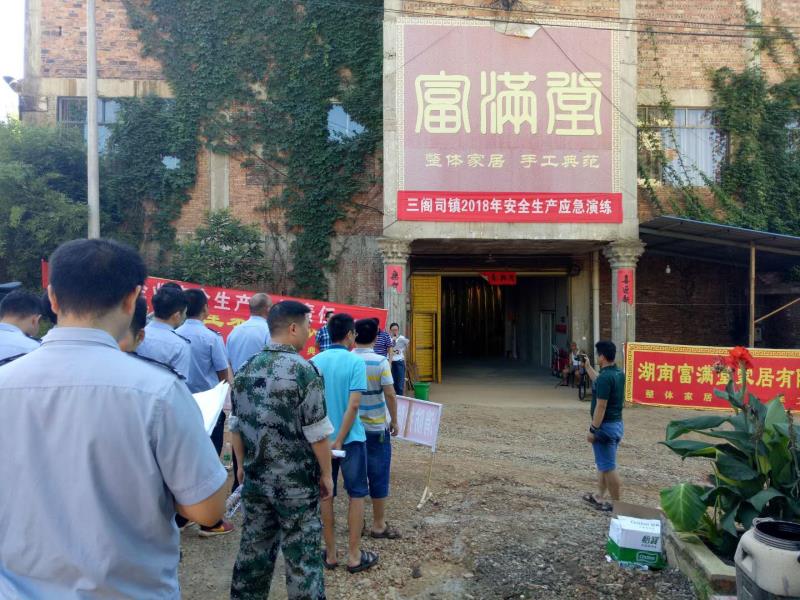 为深入贯彻《中华人民共和国安全生产法》、《中华人民共和国消防法》, 6月28日上午,三阁司镇在福满堂家居有限公司开展了消防安全应急演练,组织派出所、卫生院、交管站、运管站、民兵应急分队以及企业员工参加演练。