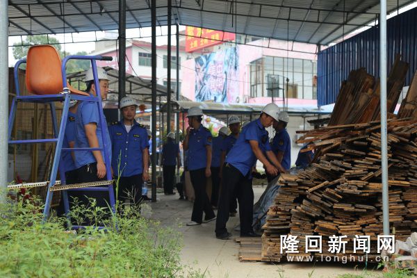 拆违队员清运违建建筑内堆放的物品