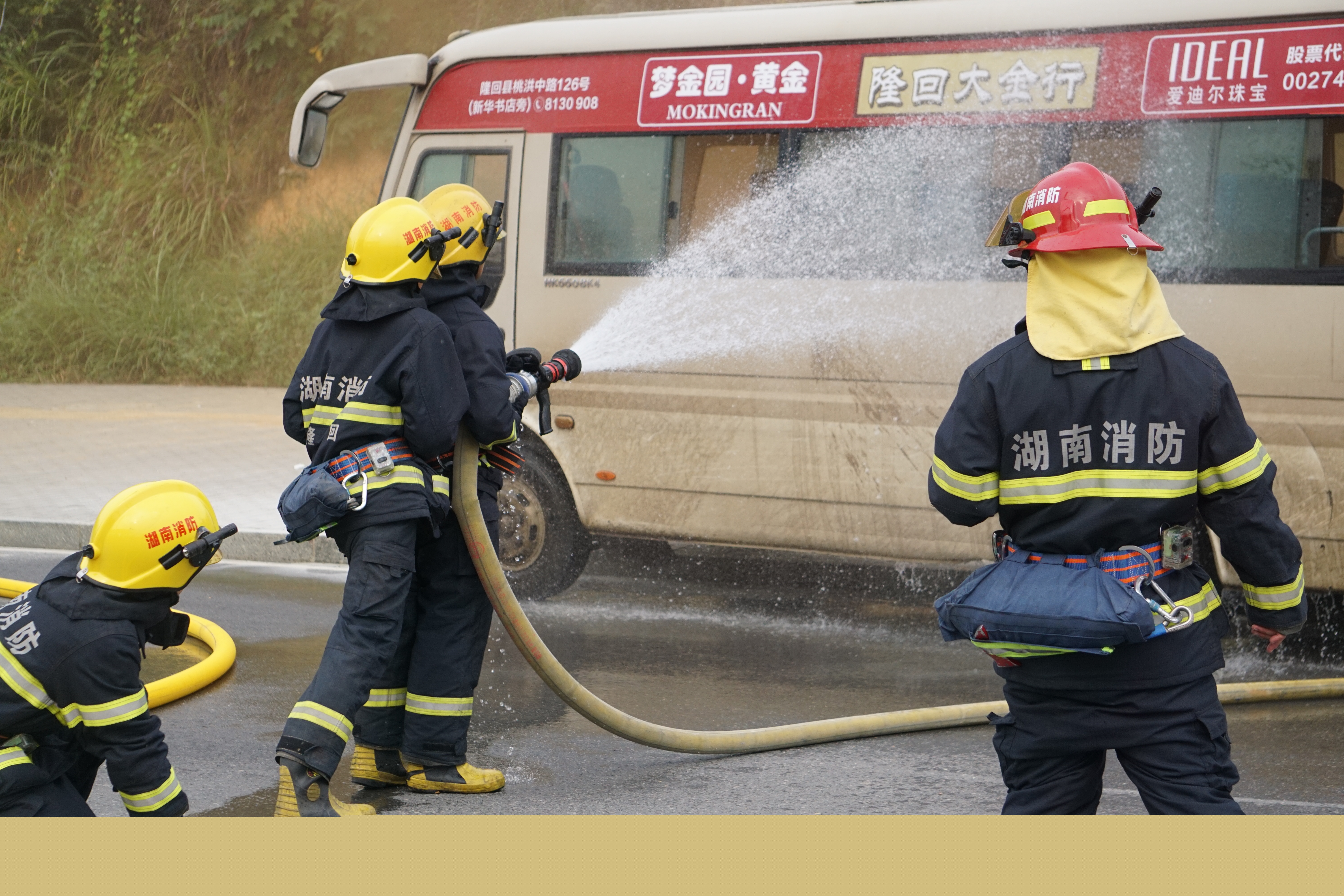演练模拟9月12日上午9:10分,隆回县城郊区,一辆牌号为江C5689客车发生交通事故,车辆驶出路外,随即发生自燃,造成人员受伤,情况十分危急。事故发生后,客运车辆司乘人员立即开展自救,控制火势,转移伤员,疏散其余乘客,同时拨打120急救电话,并向运输公司报案、110报警。110指挥中心立即将情况报给县应急办,应急办立即启动隆回县交通事故应急救援预案,同时通知交通局、道路运输管理所等各联运部门前往处置。通过多个部门的共同努力,事故伤员得到了及时救治,现场滞留乘客被及时转移,事故现场及时清理完毕,道路恢复正常通行。