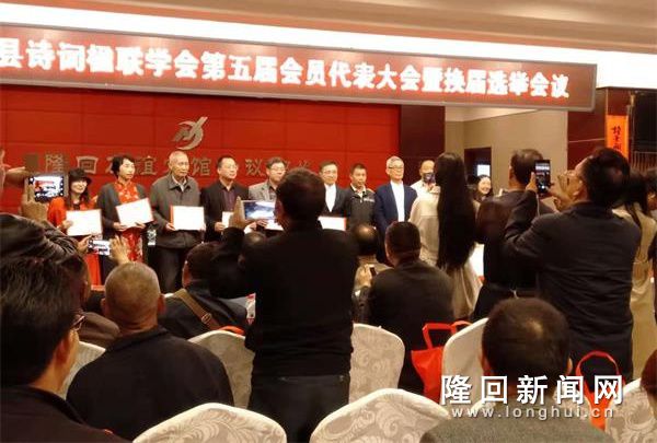 诗词楹联学会换届现场,为十佳优秀会员颁奖