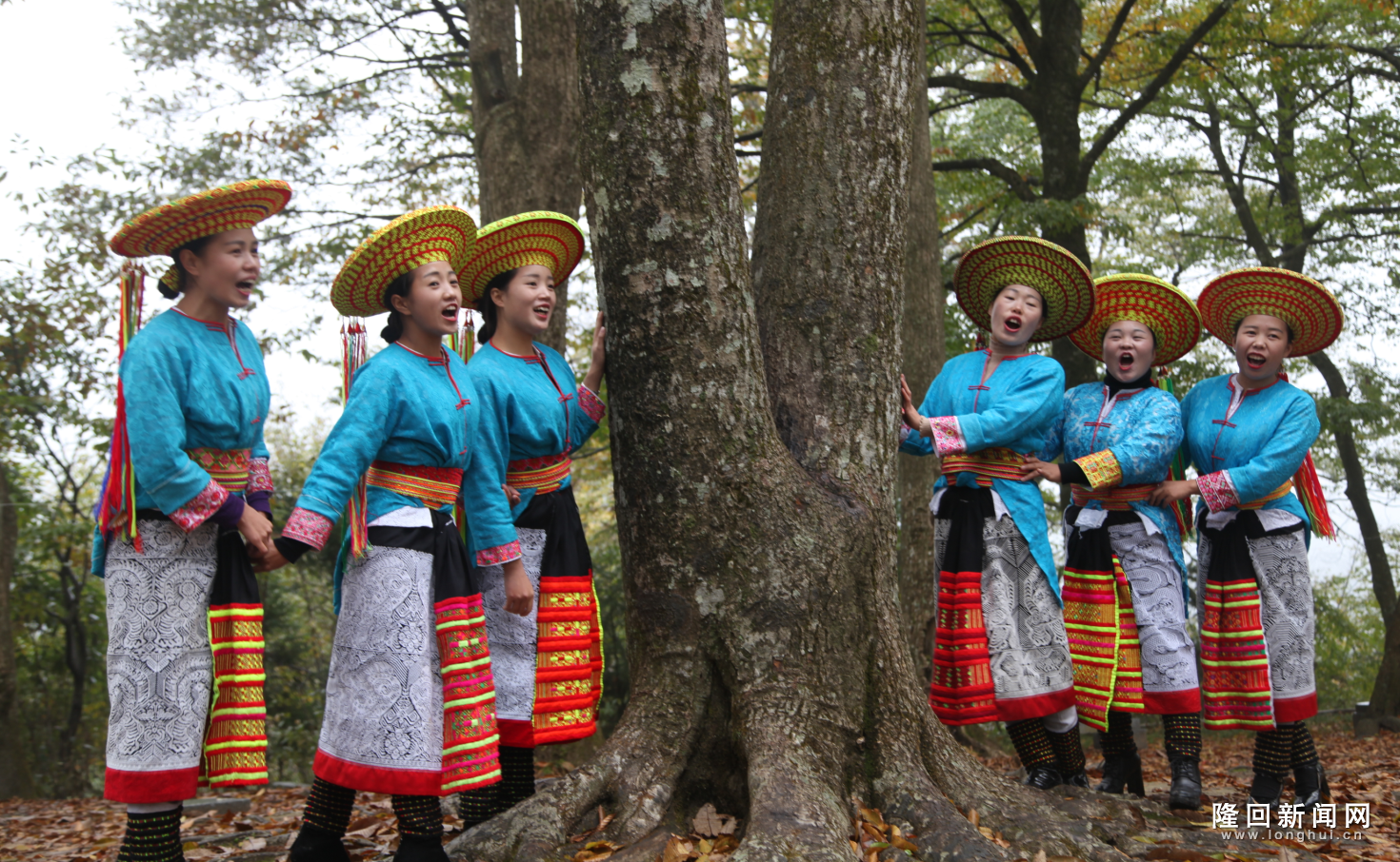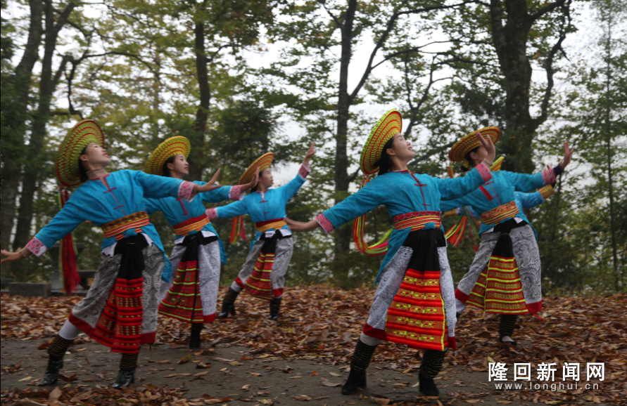隆回新闻网讯(通讯员 杨贵新 郑福喜 刘继群 王文生)10月18日,在隆回县虎形山瑶族乡崇木凼村古树林里,一群花瑶姑娘为游客跳起欢快的舞蹈。