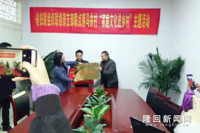 —分享— 12月7日,省妇联组织联络部部长李凯辉一行五人,在县妇联主席陈乐娟、县妇幼保健院副主任孙中响陪同下,来到落马井村开展“家庭文化进乡村”主题活动。落马井村三十余名妇女同志参加了此次主题活动。 活动现场,部长李凯辉讲到“家庭文化进乡村”是加强农村家庭文化建设,改变农民思想观念,发挥家庭家教家风的文化功能,为脱贫攻坚助力。现场捐助落马井村亲子读书33000元和授予牌匾,随后省妇联授课老师为落马井村妇女同志们上了一堂丰富的生理课。最后入户走访八户特困贫困户家庭,为每户送去慰问金。 来源:隆回新闻网|0 作者:周祥 编辑:redcloud