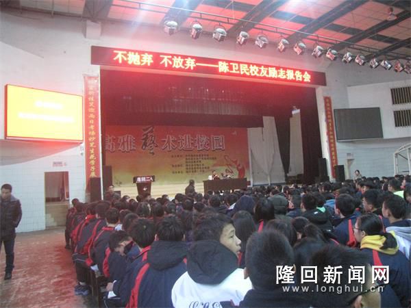 隆回新闻网讯(通讯员 刘剑)“我能活到现在,而且有了一点成绩,就是不抛弃,不放弃……” 12月8日,应母校邀请,陈卫民为湖南省隆回县第二中学默深文学社和高一年级2000多名师生分别做了文学讲座和以“不抛弃 不放弃”为主题的励志专题讲座。