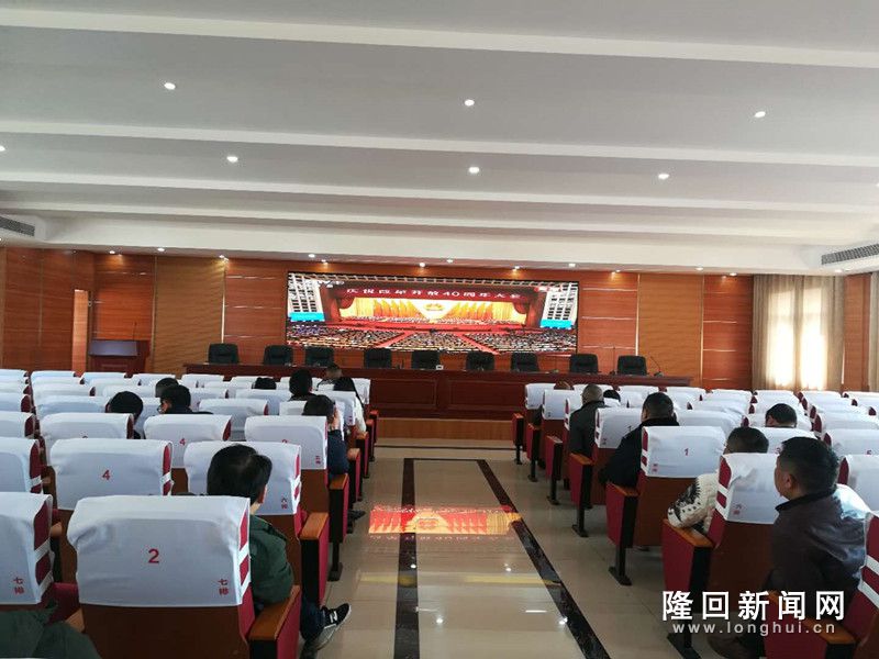 图为县国土资源局干部在收看《庆祝改革开放40周年大会》直播
