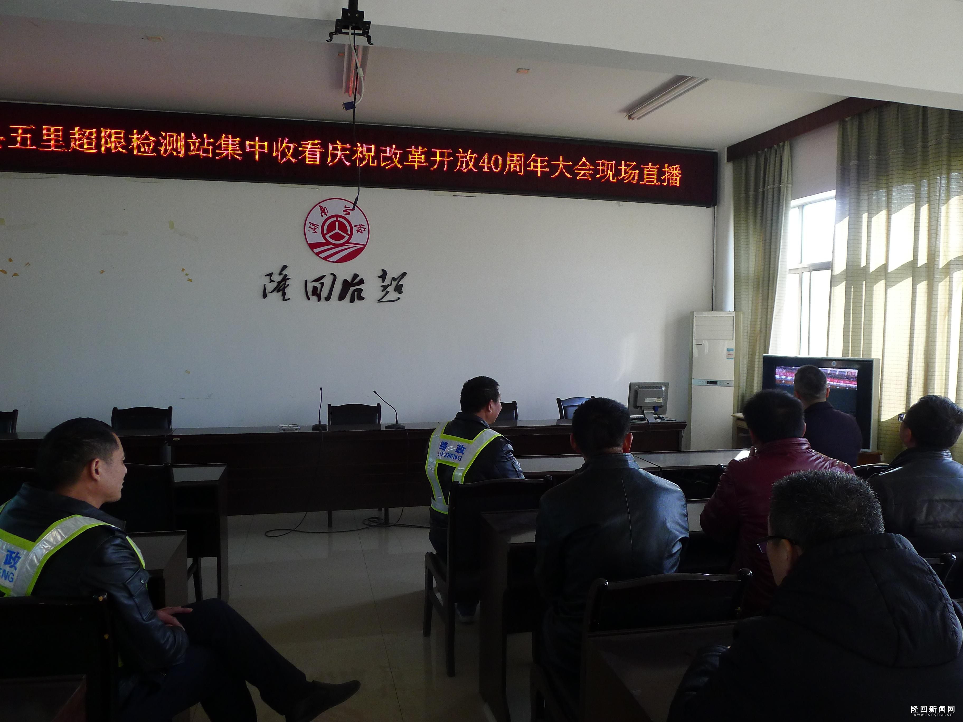 隆回新闻网讯(通讯员 彭中焱)12月18日上午10时,隆回县五里公路超限检测站组织管理人员集中收看“庆祝改革开放四十周年大会”现场直播,认真聆听了中共中央总书记、国家主席、中央军委主席习近平在大会上发表的重要讲话。