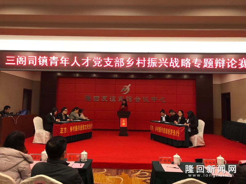 1月8日下午1点30分,隆回县三阁司镇在友谊宾馆四楼举办乡村振兴战略专题辩论赛决赛。此次比赛特邀县演讲家协会名誉主席龚小平、组织部副部长陈云鹤、组织部组织组主任科员陈端吉组长,镇党委书记王柏玉、镇青年人才党支部书记黄漾波担任评委。