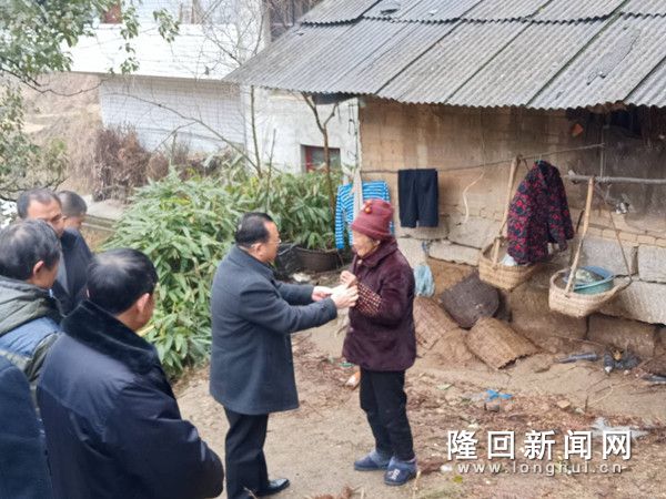 在横金村3组调研走访时,胡芒权发现田纯红老人生活困难、家里条件较为艰苦。为确保其基本生活得到保障,胡芒权立即组织鸭田镇党政负责人、县司法局驻横金村扶贫工作队、横金村村支两委开展现场办公,为其安置新家,送上四套棉被、棉袄大衣和两袋大米。在当天的走访过程中,胡芒权还为横金村11户高龄老人和困难群众送上慰问金。
