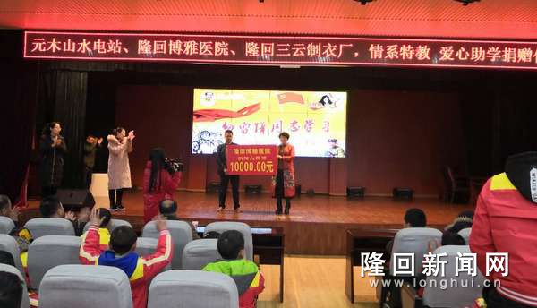 隆回新闻网讯(通讯员 刘小玲 刘家宇)3月7日下午,隆回县特校在多功能厅隆重举行了“情系特校 爱心助学”捐赠仪式。元木山电站、隆回县博雅医院、隆回三云制衣厂等三家爱心企业各捐赠一万元爱心款,其中三云制衣厂还捐赠校服两百余套。