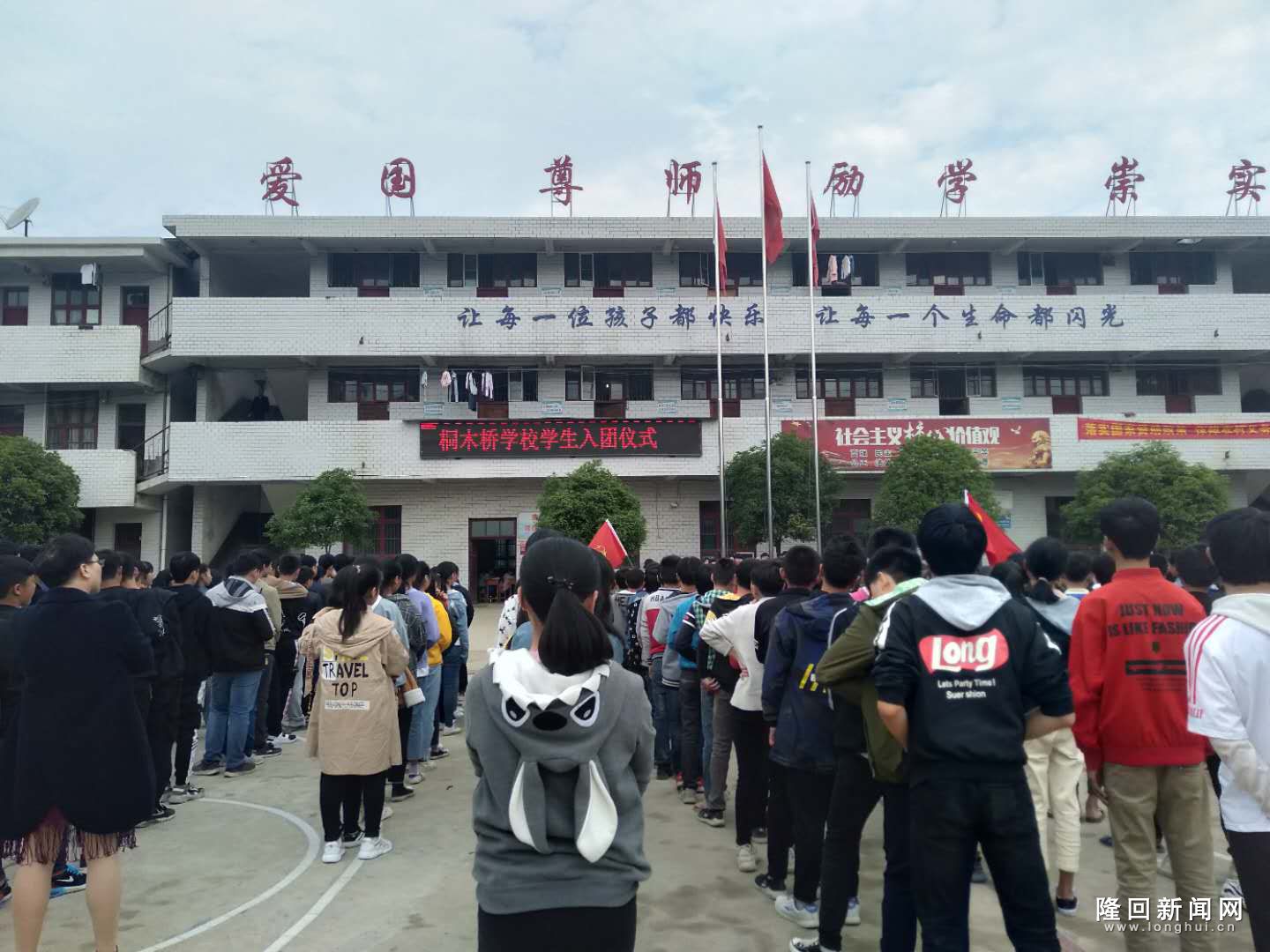 5月9日,桐木桥九年义务制学校团支部举行了新团员入团仪式。初中部500多名学生参加。