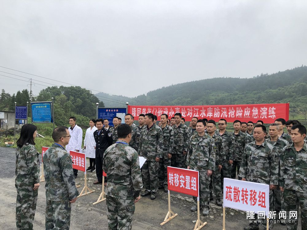 此次演练,成立了对江水库防汛抢险演练指挥部,花门街道党工委书记谭小菊任政委,街道办主任谢永升任指挥长,街道办副主任黄晓云任现场指挥长,有序指挥民兵应急抢险分队、物资保障组、信息联络组、转移安置组、医疗救护组、秩序维护组、宣传报道组迅速集结完毕,采取沿堤坝构筑沙袋、搜救受困群众、发放物资、宣传政策等举措,对水库进行了险情排查,并转移水库下游群众30人。