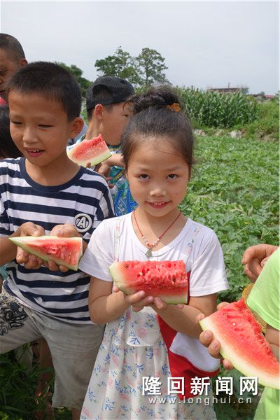 隆回新闻网讯(通讯员 王双进 邹可珂) “哇塞,我们好有口福啊!——今年的西瓜比蜜糖还甜,口感风味超佳,还渗透着一股芝麻的芳香呢!”