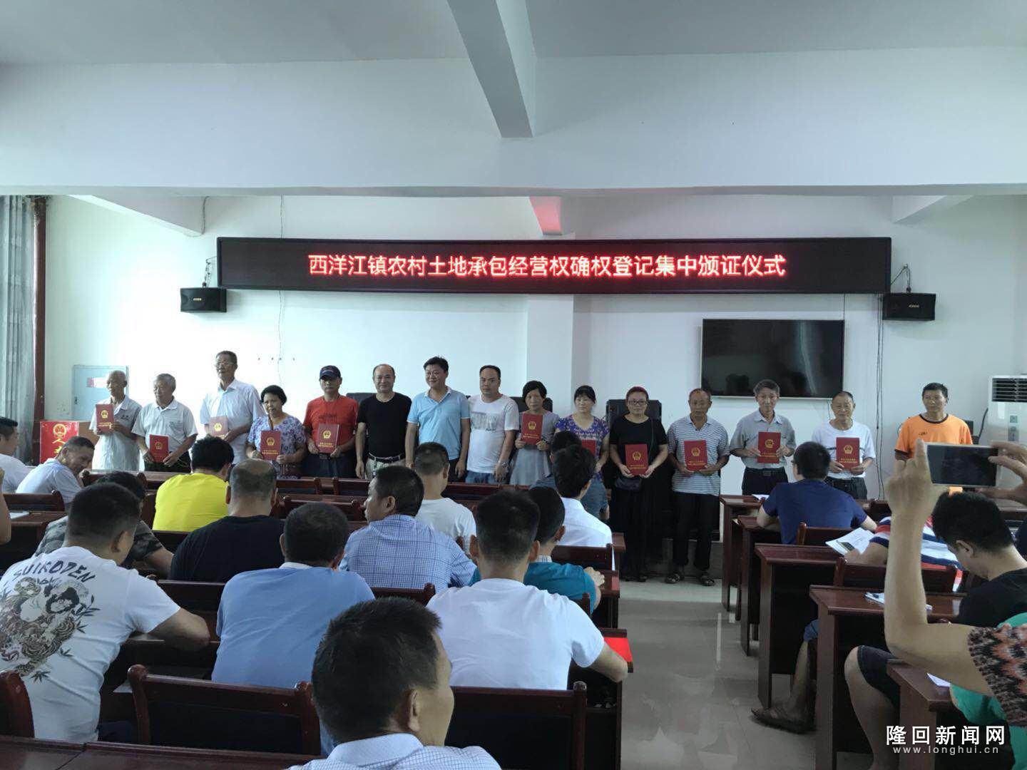 2019年7月4日上午,西洋江镇召开土地承包经营权确权登记集中颁证仪式会议