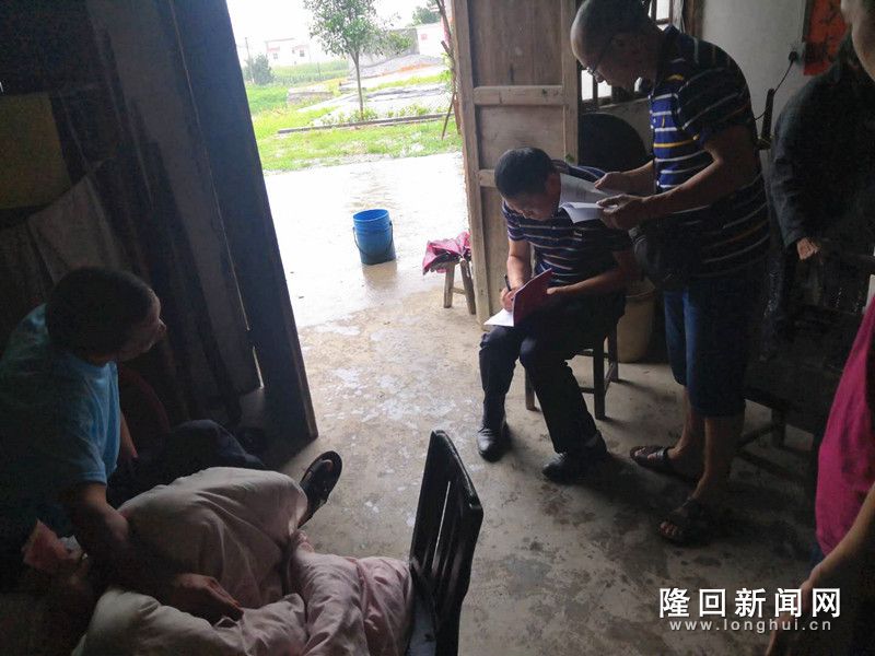 7月7日晚,新一轮的强降雨突袭隆回,“贫困户住的房子有没有漏雨?农作物受损严重么?道路有没有塌方?”连续几天的降雨牵动着谢东海的心。7月8日,谢东海带领全体干部职工前往结对帮扶的龙洲村开展入户走访活动,看望慰问贫困户,并对“两不愁三保障”情况进行全面摸底排查。