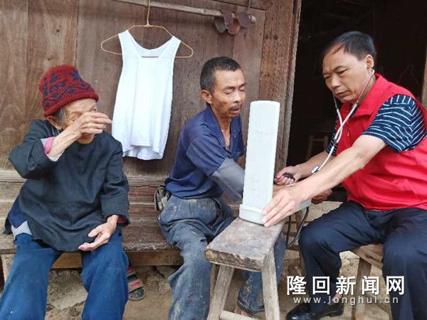 图为南岳庙镇卫生院工作人员在给卿笃前免费诊疗