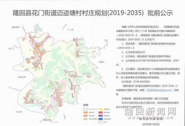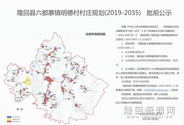 隆回新闻网讯(通讯员 彭志丽 张洁 阳小龙)7月9日,隆回县自然资源局对六都寨镇明德村、花门街道迈迹塘村村庄规划进行批前公示。