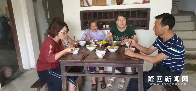 7月19日,隆回县金石桥镇党委书记刘琴来到五罗村结对帮扶对象对象张满娥家中,开展“同吃住同劳动同谋划”活动。时值中午,刘琴书记亲自下厨,为贫困户张罗了一桌好饭菜。餐桌上,刘琴书记详细了解其生产生活情况,认真倾听困难和诉求,耐心宣讲扶贫政策,既增进感情又提振了脱贫信心。
