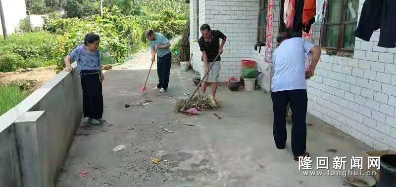 帮扶人民帮助贫困户打扫房前屋后卫生