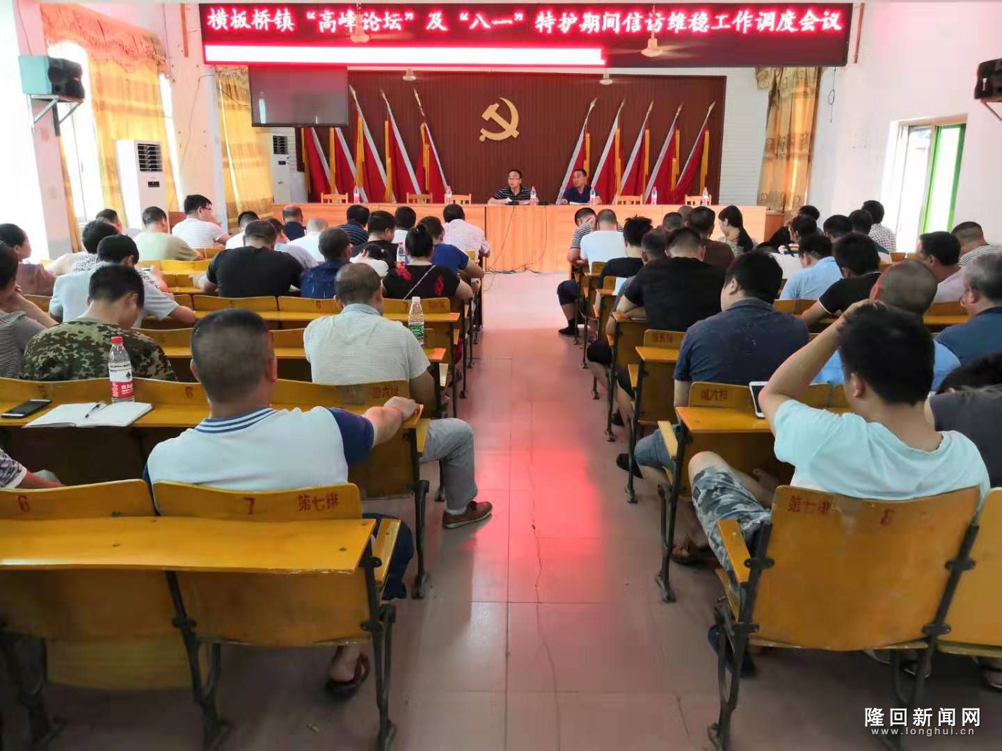 —分享— 2019年7月29日,横板桥镇组织全体干部职工召开“高峰论坛”及“八一”特护期间信访维稳工作调度会。 会议上一是强调高峰论坛及“八一”特护期间的重大意义,;二是部署信访维稳工作,责任到人。 来源:隆回新闻网|0 作者:钱迁 编辑:redcloud