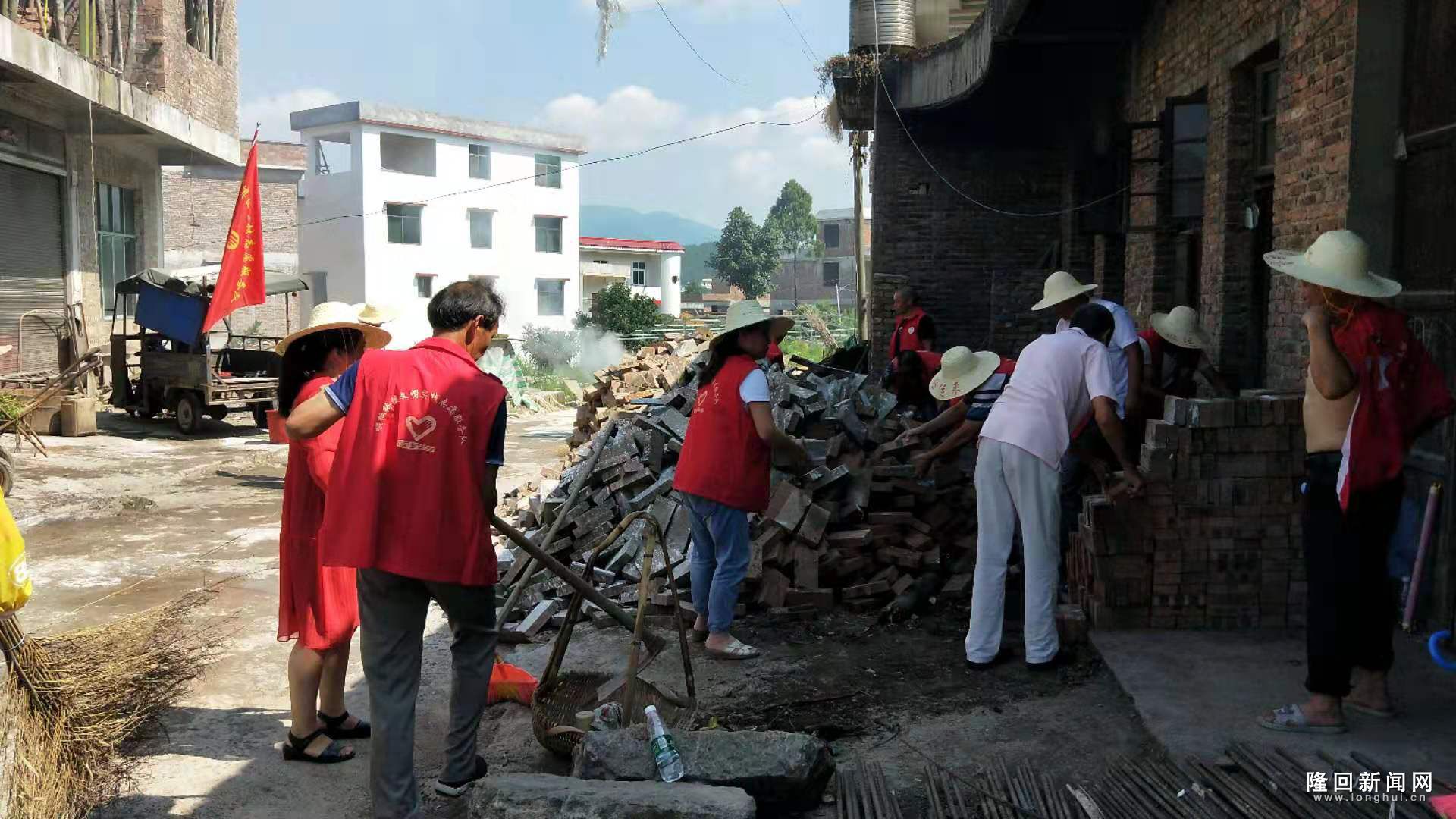 隆回新闻网讯(通讯员 钱迁)7月29日中午,隆回县横板桥镇田心村志愿服务队组织20余名队员,顶着烈日,到因病致贫的肖时红家中整治人居环境,经过3个多小时的努力,将散落在院落的4000余块红砖整理成堆,并清扫房间6间。